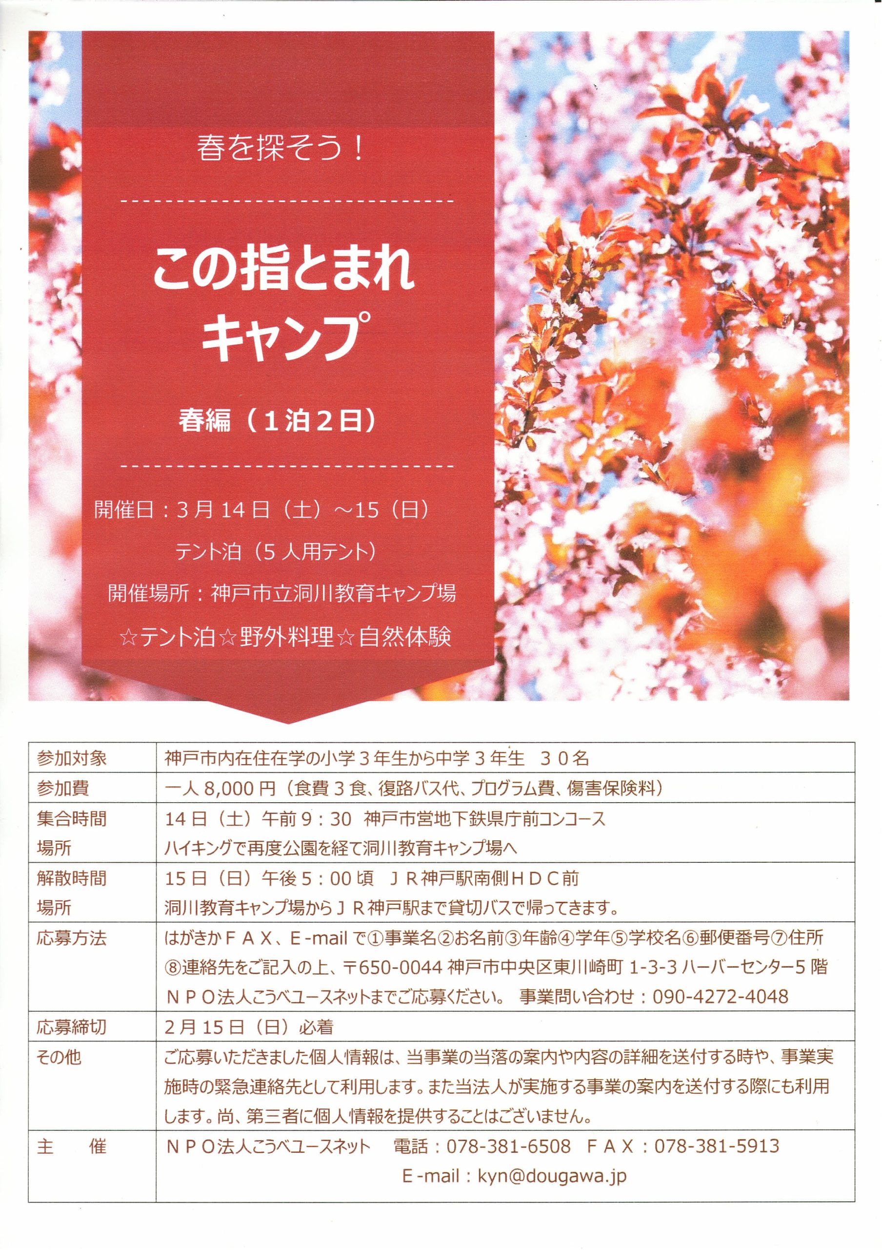この指とまれキャンプ春 参加者募集中!